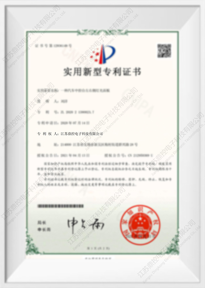 شهادة براءة اختراع لنموذج المنفعة للوحات الإضاءة الجانبية اليسرى واليمنى لوحدة التحكم المركزية للسيارة
