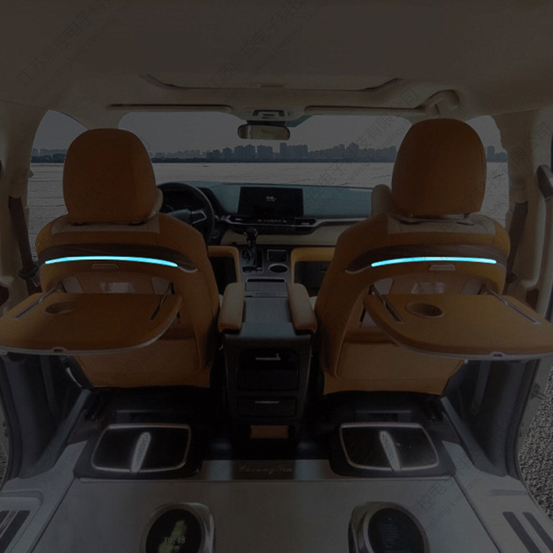 سطح الطاولة مغلف بجلد من الألياف الدقيقة عالي الجودة، ذو ملمس رقيق ودافئ وسهل التنظيف والصيانة، مع تعزيز الملمس العام وفخامة المقصورة. يضمن الإطار المعدني المتانة والدعم المستقر.